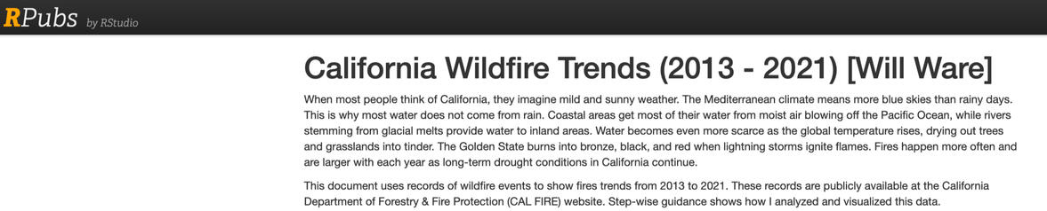 The above figure is a preview of the website I that developed to show the increasing number of acres burned by recent California wildfires.